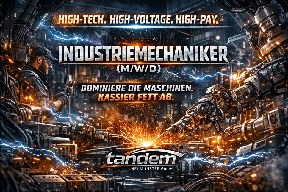 Wir sind die tandem Personallogistik Neumünster GmbH – seit über 20 Jahren unterwegs im Norden, um Menschen mit Maschinen zu verkuppeln. Nicht romantisch. Effizient. Wir sind Personaldienstleister – und wir suchen Industriemechaniker, die nicht nur schrauben, sondern Systeme dominieren.
