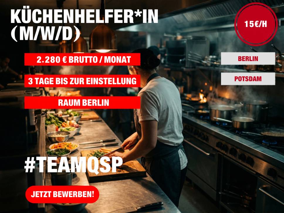 Für unseren Kunden suchen wir dich als Küchenhilfe (m/w/d) – ab sofort, mit echter Übernahmechance. Quereinsteiger sind ausdrücklich willkommen. 🚀