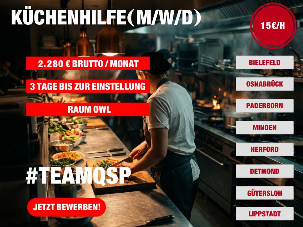 Für unseren Kunden suchen wir dich als Küchenhilfe (m/w/d) – ab sofort, mit echter Übernahmechance. Quereinsteiger sind ausdrücklich willkommen. 🚀
