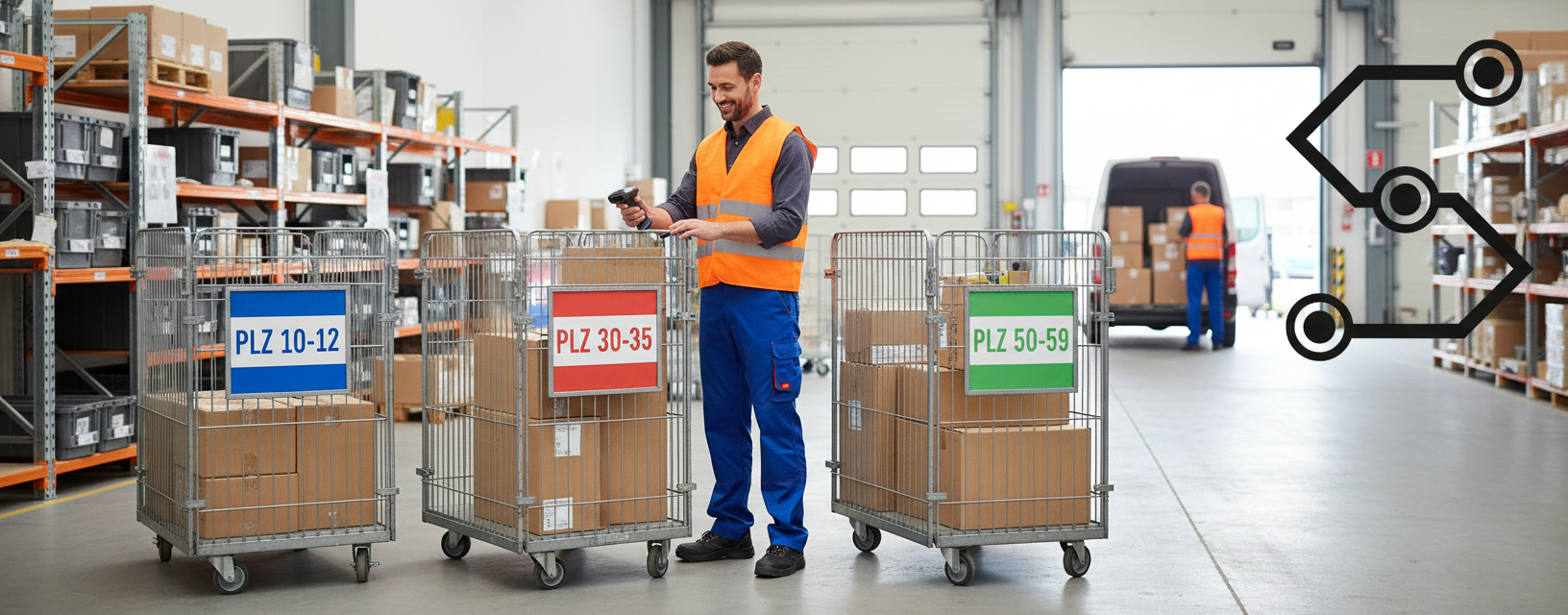 - Sortieren von Paketen nach PLZ in Gitterboxen