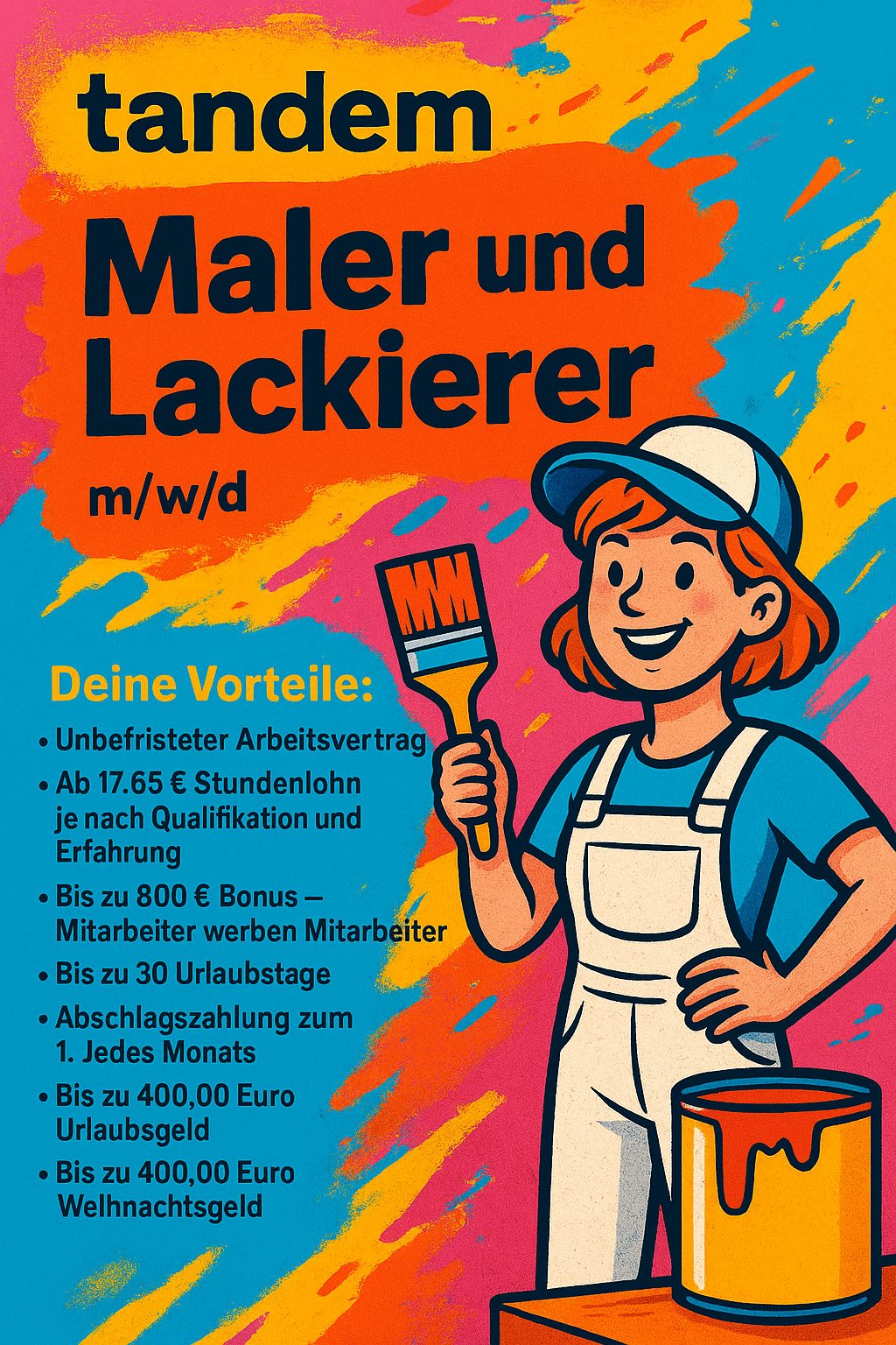 Du hast Bock, Wände zum Strahlen zu bringen, Fassaden zu verwandeln und Räume lebendig zu machen? Dann schnapp dir Pinsel, Rolle & Co. und komm zu uns – wir suchen dich für unseren regionalen Partner in Neumünster und Umgebung!