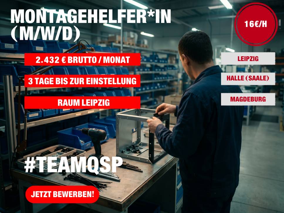 Für unseren Kunden suchen wir dich als Montagehelfer*in / Montagemitarbeiter*in (m/w/d) – ab sofort, mit starker Übernahmechance. 🚀