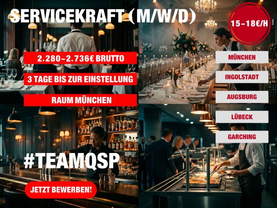 Für unsere Kunden suchen wir dich als Servicekraft (m/w/d) – ab sofort. Quereinsteiger sind bei uns genauso willkommen wie ausgebildete Restaurantfachleute. 🚀